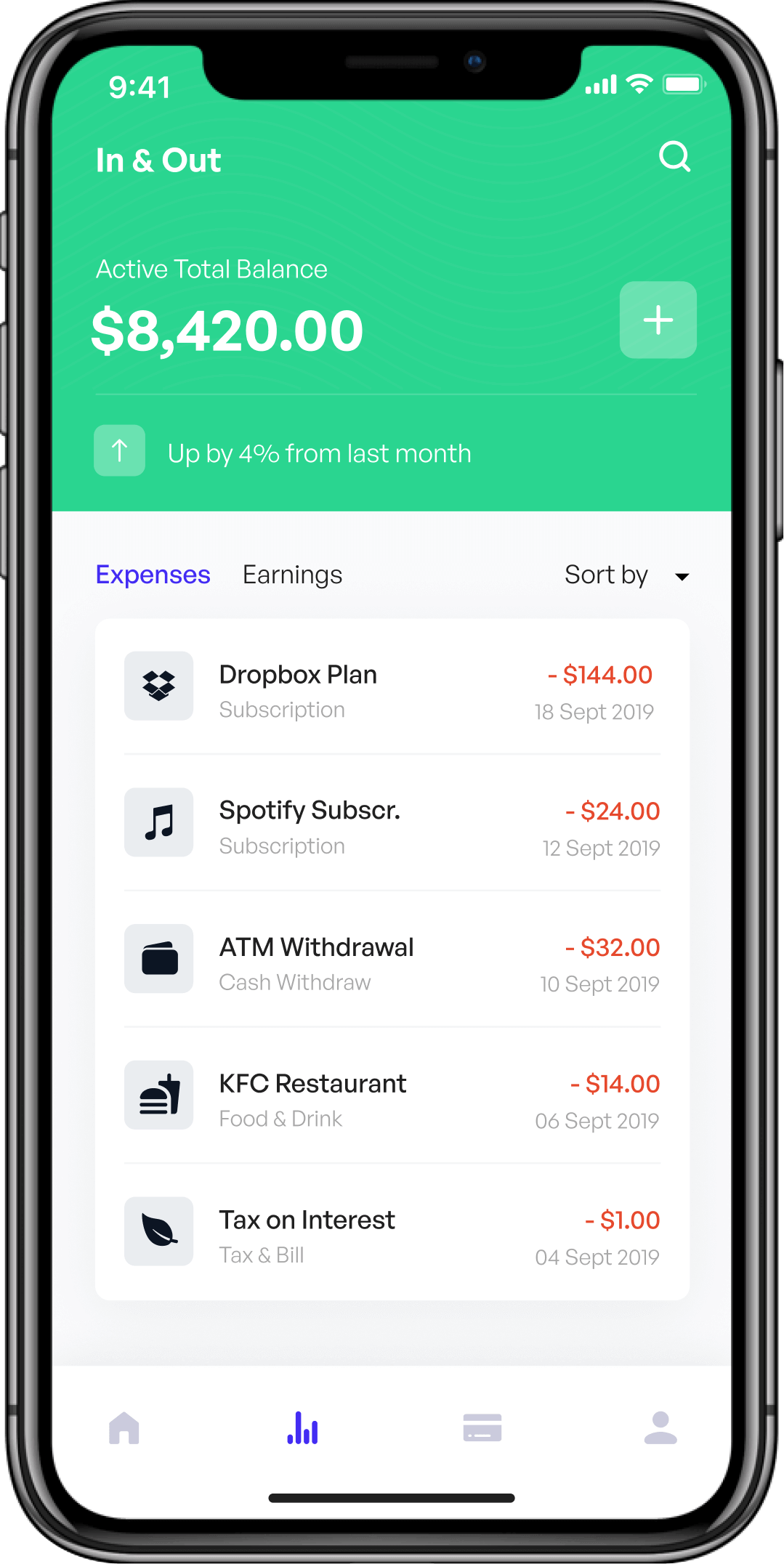 See where money is coming in and how much is going out from your accounts.